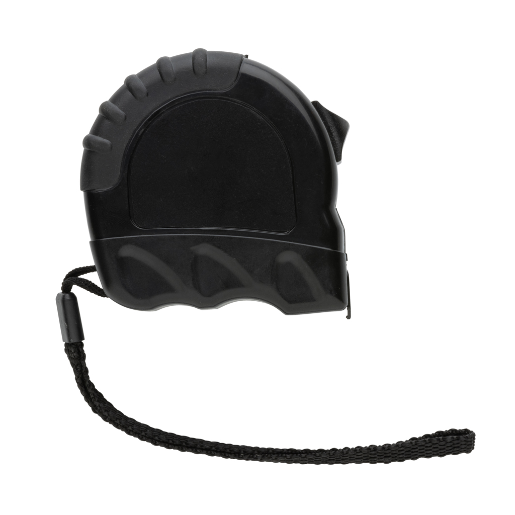 5 metre tape made with RCS (Recycled Claim Standard) certified recycled ABS. Total recycled content: 17% based on total item weight. RCS certification ensures a completely certified supply chain of the recycled materials. With deluxe TRP rubber grip for smooth grip. With release/lock button. With 19mm single sided tape, yellow with black carbon steel hook. With polyester wrist strap. Packed in FSC® mix kraft packaging