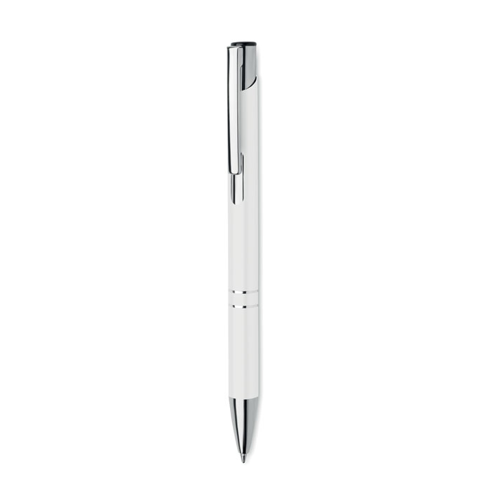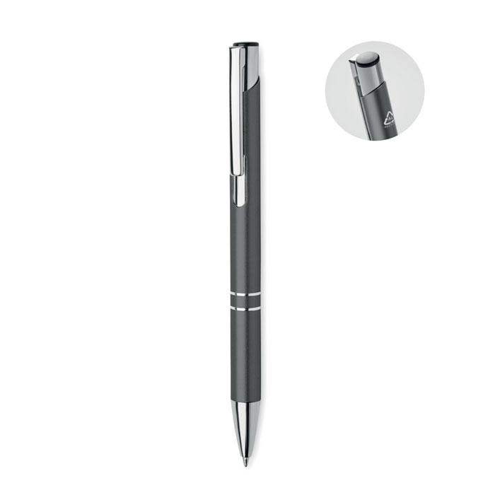 Push button ball pen in recycled aluminium. Blue ink.