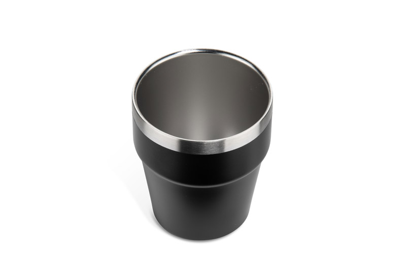 The MAKEL mug made of recycled stainless steel combines modern design and functionality. The double wall improves heat insulation so drinks stay hot longer. Its lightweight construction and semi-matt finish make it great in the hand and comfortable to use. The distinctive metal rim gives it a unique industrial look. Ideal for the office, meetings or when travelling. The product can be branded with your logo to create a stylish gadget to promote your brand.