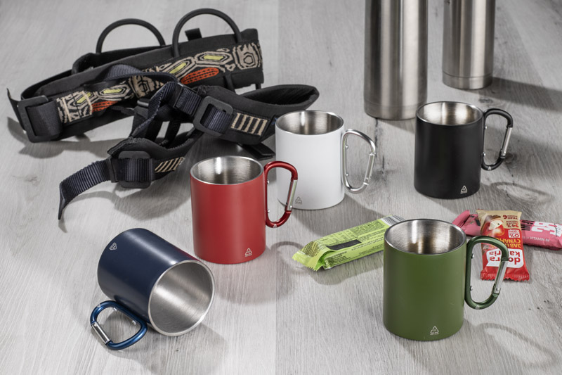 The 250 ml VIVO mug is made from recycled stainless steel and its carabiner-style handle is made from recycled aluminium. The matt finish gives it a modern look and the snap hook allows the mug to be easily clipped to a rucksack or bag. Practical for travelling, camping or walking, it makes an attractive promotional gadget and an excellent choice for those who value conscious solutions.