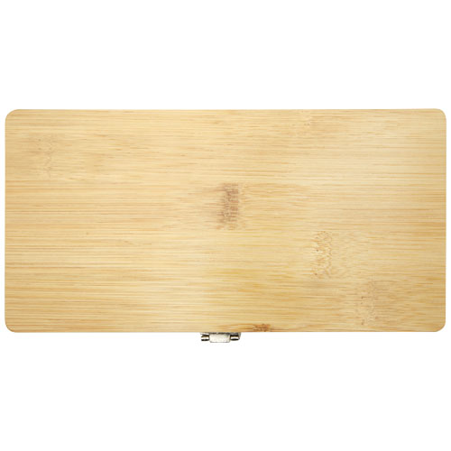 Experience the perfect blend of sustainability and functionality with the Rivet tool set. This meticulously designed toolbox is not only visually appealing, but also environmentally responsible without compromising on quality or performance. The bamboo’s natural strength and durability ensure that your tools are protected for years to come. Inside the case, you’ll find a set of 19 essential tools crafted from carbon steel and recycled plastic: 1 long joint handle, 4 high-quality sockets for various applications, 1 extension bar for hard-to-reach areas, 10 precision engineered screwdriver bits for any task, and 3 hex keys for furniture assembly. Whether you’re a DIY enthusiast or a professional tradesperson, these tools are designed to perform reliably and withstand rigorous use. Since bamboo is a natural product, there may be slight variations in colour and size per item, which may affect the final printing outcome. Packed in a STAC gift box from sustainable sources.