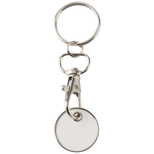 The Rory keyring with coloured trolley coin is designed to fit most supermarket trolleys, allowing you to unlock them without coins or tokens.