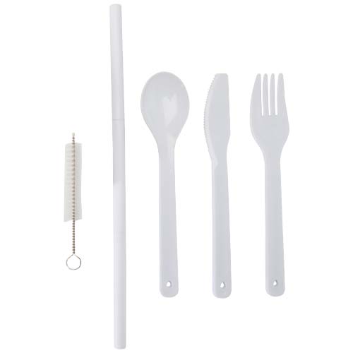 A reusable cutlery set with a bamboo lid, including a fork, knife, spoon, straw, and straw cleaner – ideal for meals on the go. Compact and easy to clean, it’s perfect for lunch boxes, travel, or office use.