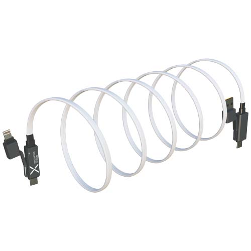 Super fast 60W magnetic charging cable that powers smartphones, tablets, and laptops. The 1-metre flat cable features Type-C and Lightning connectors, cords made from recycled plastic bottles, and durable zinc alloy end caps. With dual USB-A and USB-C input, it ensures 100% compatibility with the latest computer models. Fully compatible with Apple CarPlay and Android Auto. Customisation is available via laser engraving on the zinc end cap. Supplied in a recyclable TPU pouch with a recycled paper insert.
