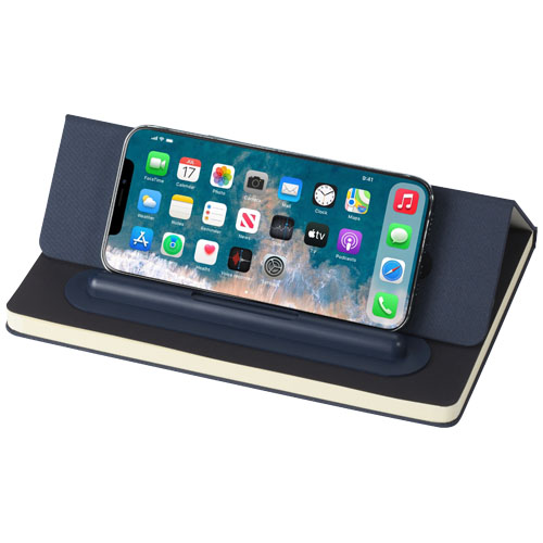 The RCS certified Skribo pen and notebook set is partly made from recycled post-consumer polyester, making the set a more sustainable choice since it helps to reduce the use of virgin raw material. Featuring a ballpoint pen with blue ink, and 80 cream coloured lined sheets with 80 g/m2 recycled paper from sustainable sources. The writing length of the pen is 1000 metres.