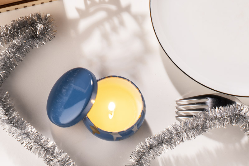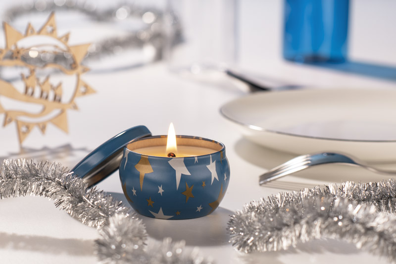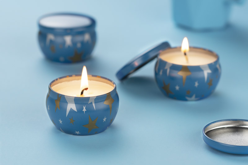 The ASTRO candle is made of natural soy wax with the scent of lime, basil and mandarin. Candle in original resealable tin with silver and golden stars print.