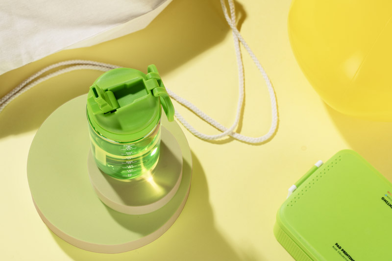The NINO 400 ml sport bottle is a handy beverage container with a practical graduation to make it easier to control the amount of liquid. Equipped with a folding handle, integrated straw and flip-top lid – ideal for the office, events and travel. Thanks to its compact form and convenient opening mechanism, using the bottle is quick and effortless.