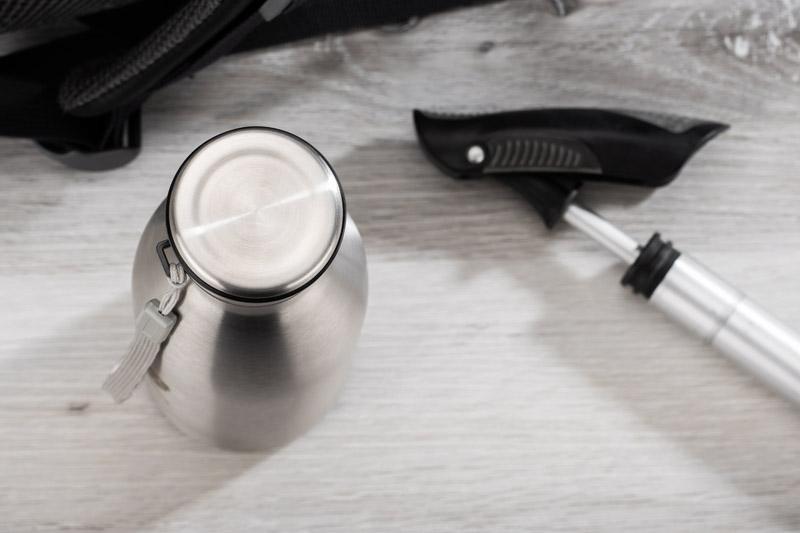 The KONRA bottle made of stainless steel looks elegant and original. The bottle has a screw cap, which ensures its tightness and ease of use. The included string makes it easy to carry. Capacity 600 ml.