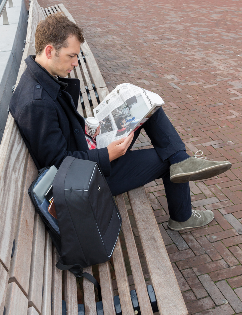 This Swiss Peak anti-theft 15.6” laptop backpack is a stylish option for your every day commute. The hidden zipper closures and secret pockets will keep all your belongings safe. Connect your powerbank easily to the integrated USB charging port and charge your phone or tablet on the go. Stay visible at night thanks to the reflective safety strips. With luggage strap. With AWARE™ tracer that validates the genuine use of recycled materials. Each bag has reused 24.4 0.5L PET bottles. 2% of proceeds of each AWARE™ product sold will be donated to Water.org. PVC free. Registered design®