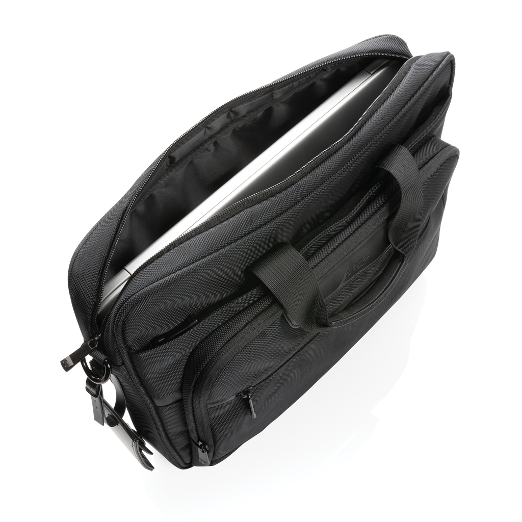 Make the daily commute a little bit easier and a lot more stylish with this laptop bag. The bag is made from durable 1680D recycled polyester with AWARE™ tracer and rich PU details, it incorporates multiple pockets for storage and organisation. This bag features a padded 15.6″laptop pocket and an additonal front zipper pocket to hold your other daily essentials. The exterior is made with 1680D recycled polyester, the lining is 150D recycled polyester. With AWARE™ tracer that validates the genuine use of recycled materials. Each bag has reused 36.66 0.5L PET bottles. 2% of proceeds of each product sold containing AWARE™ will be donated to Water.org.