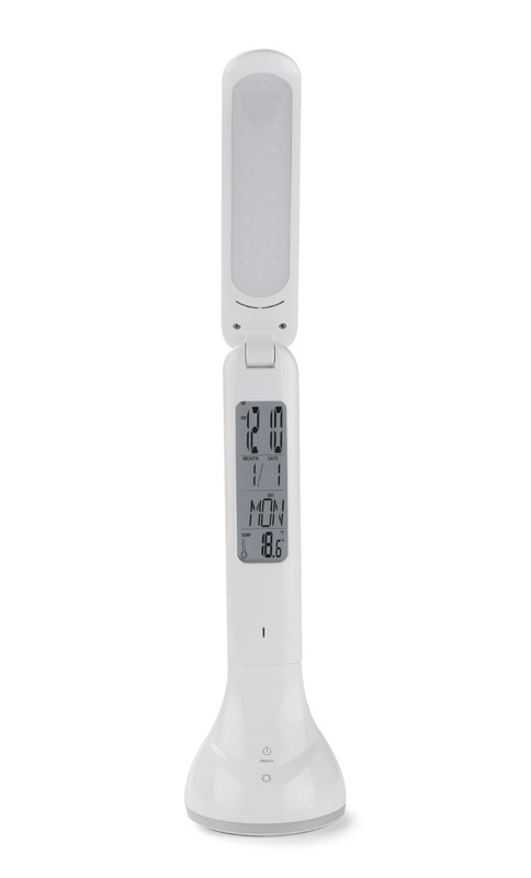 Unique desk lamp with a built-in weather station. The lamp has three levels of light intensity so that your desk will always be adequately illuminated. A special filter located by the LEDs makes the light more natural and helps protect your eyes. Variable, multi-colour backlighting (RGB – red, green, blue) of the stand gives it a modern look and creates a unique atmosphere. ENLI owes its functionality to the built-in 1200 mAh battery – the lamp can be set anywhere without worrying about unnecessary cables. The built-in weather station has the following functions: time, date, day of the week, temperature, alarm, and birthday reminder.
