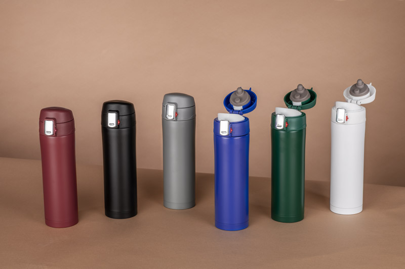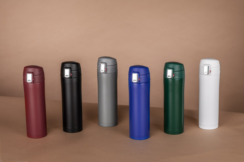 The 440 ml LOCK MAT thermal mug is a reliable companion on the move and in the office. Thanks to its double wall with vacuum insulation, it keeps drinks hot for a long time and the outer surface does not heat up, protecting your hands from burning. The flip-top lid with top-opening flap allows for convenient drinking and a tight seal – the cup does not leak even in a bag. The „press” opening mechanism makes it easy to use with one hand. The matte finish gives it a modern look and the new colours make it easy to match the brand identity. The product can be branded with a logo, creating a practical and aesthetically pleasing advertising gadget.