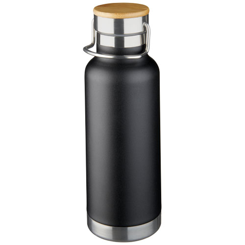 Double-walled stainless steel vacuum construction with copper insulation, which allows beverages to stay cold for 48 hours or hot for at least 12 hours. The construction also prevents condensation on the outside of the bottle. Screw-on lid with wood detail. On-trend, durable powder coating. Volume capacity is 480ml. Presented in an Avenue gift box.