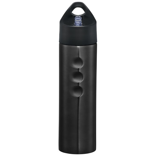 Single-wall construction. Screw-on, spill-resistant lid with flip-top drinking spout. Side finger grips for handling ease. Volume capacity is 750 ml.