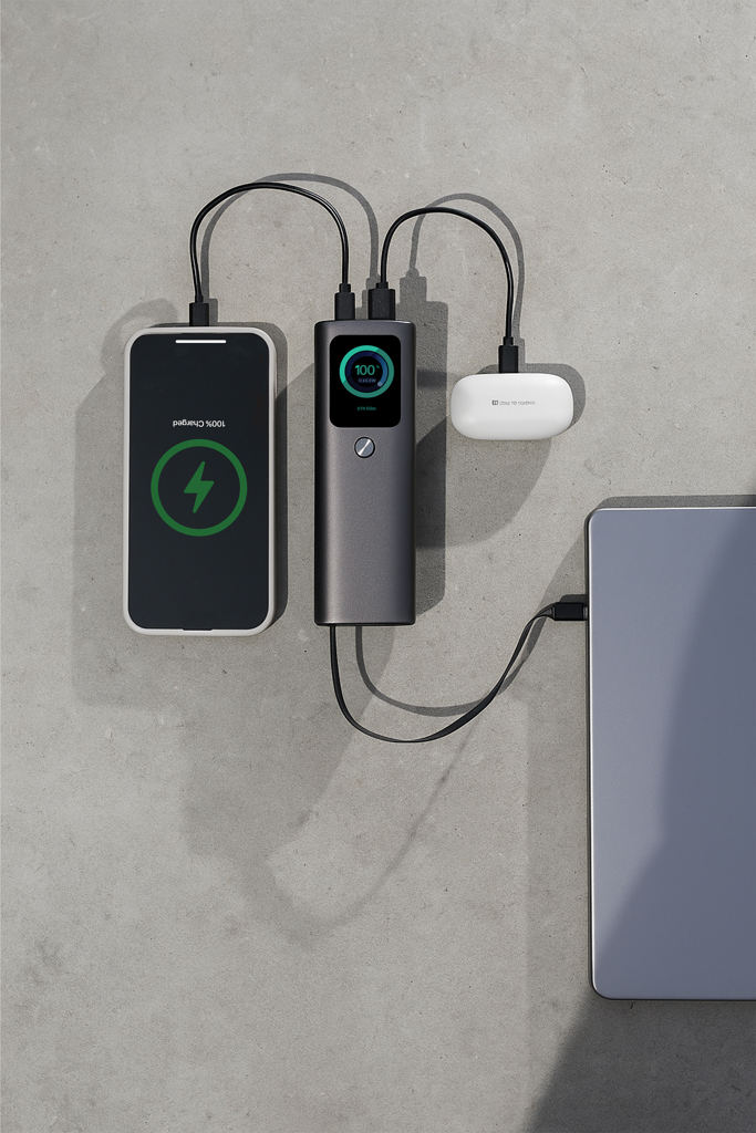 The Urban Vitamin Stanford powerbank is the pinnacle of advanced charging technology, offering unparalleled performance for those who demand the best. With a robust 20,000 mAh capacity, the Stanford supports an incredible 165W mega-fast charging, ensuring your devices, including multiple laptops and MacBooks, are powered up simultaneously and at lightning speed. Equipped with three output options: —two USB-C and one USB-A—the Stanford is designed for maximum versatility. It also features a unique integrated 70cm retractable USB-C fast 100W cable reducing the need to carry extra accessories. The high-quality TFT colour display provides real-time updates on charging speed and device status, keeping you fully informed during every charge. Built with a durable aluminium housing, the Stanford delivers a premium look and feel while maintaining a lightweight and portable design. Urban Vitamin products are made without PVC and are packed in plastic-reduced packaging.