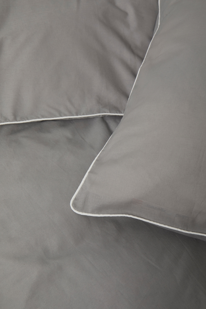This elegant set features a solid colour design with piping detail in contrasting colour along the edges, adding a touch of sophistication to your bedding ensemble. Complete with two pillowcases (50×60 cm) and two duvet covers (150×210 cm), it ensures a coordinated and chic look for your bed. This bedding set is only available in Swedish standard sizes. As bedding sizes can vary across Europe, we recommend checking the measurements to ensure a proper fit. The Organic Content Standard (OCS) verifies organically grown material and tracks it from source to final product. This product contains 98% OCS certified organic cotton.
