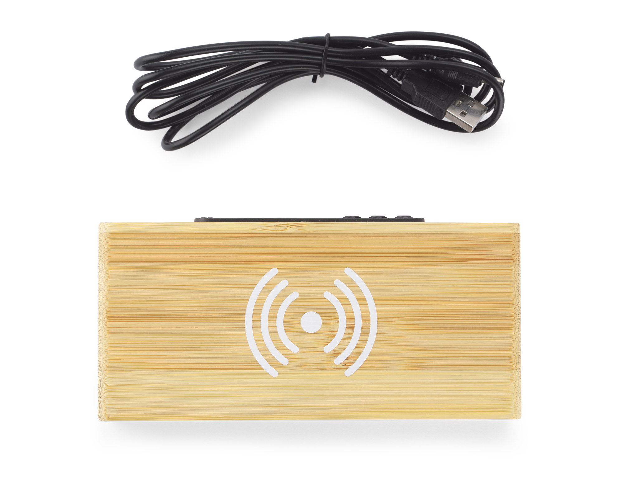 The INDUCTO desk clock is a combination of a digital clock in an eco-friendly bamboo casing with a 5W induction charger. It is a gadget that looks great on a desk and is also extremely practical. Power cable included. Clock with calendar and alarm function. Specifications: power supply – DC 5V / 2A input, AC100-240V 50 / 60Hz, wireless charger output: 5V / 1A (max.)