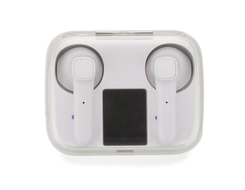 TRUVI wireless headphones are compact in-ear headphones packed in a handy case that also functions as an battery, that allows to recharge the headhones. The LED display shows the current state of charge of both the batteries in the case as well as each earpiece. Touch control of the headphones ensures comfort of use. The headphones have a built-in microphone, which allows to make phonecalls. It is also possible to use one earpiece can be used. Specifications: Bluetooth version: V5.1, Bluetooth frequency: 2.4 – 2.48 GHz, Bluetooth range: up to 10m, battery capacity in each earpiece: 30 mAh, battery capacity in the case: 300 mAh, working time up to 3 hours, standby time: 300 hours