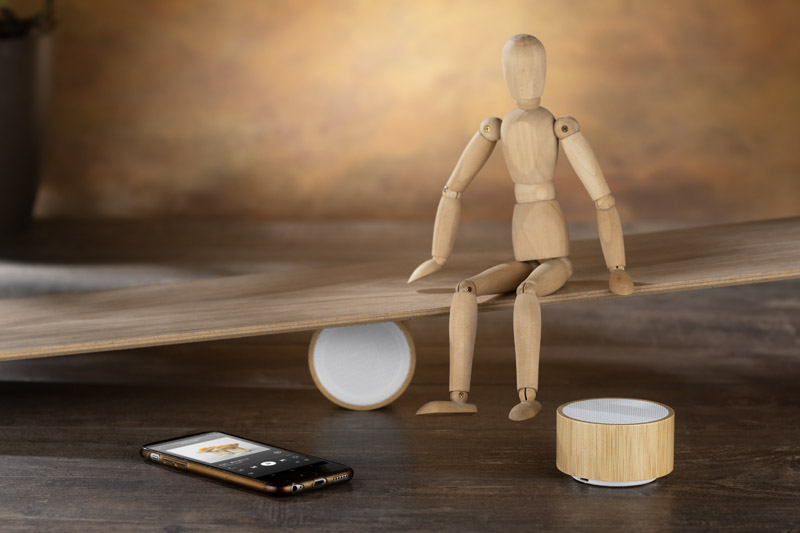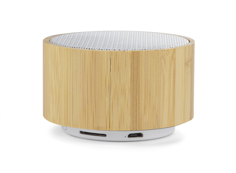 TROPIC is a small and smart speaker finished with natural bamboo. It can be used as a handsfree system. Music can be played via Bluetooth (version 5.0) or a micro SD card. The product complies with relevant European Union Directives and has the CE Certificate. Technical specifications: output power: 3W x 1 Voltage: 5V S/N ratio: ≥ 65 dB, working time: 2–3 h, charging time: 2 hours, 300 mAh battery.