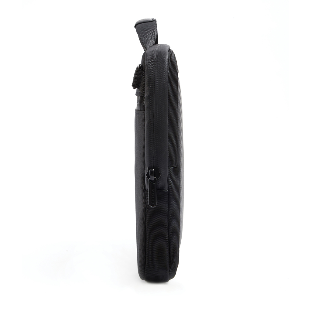 The XD Design 16″ Laptop Bag offers reliable laptop protection. Crafted from R-pet 1200D fabric and textured PU, it features a water-repellent finish. The top handle and shoulder strap provide versatile carrying options, while the rear pocket offers convenient storage for essential items. The waterproof zipper and textured fleece lining add an extra layer of resilience. Made from R-pet fabric with the AWARE™ tracer. With AWARE™, the use of genuine recycled fabric is guaranteed. 16% recycled content.