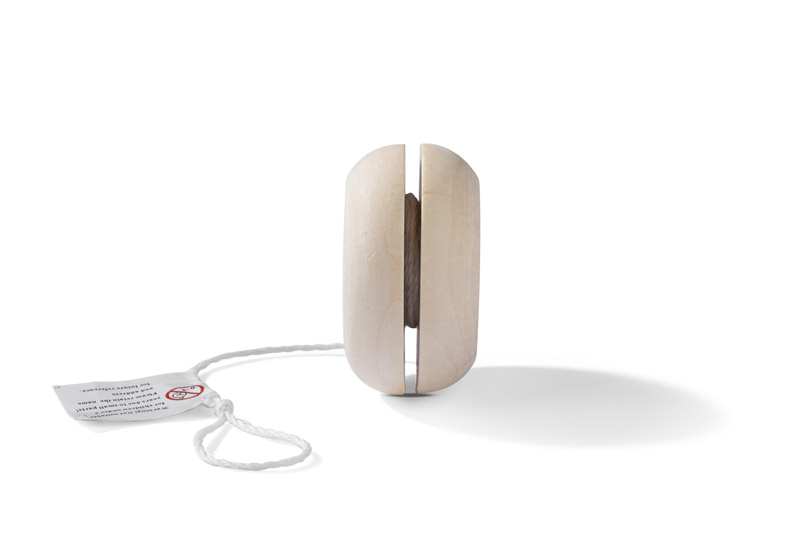 A classical yo-yo made of wood. Raw, unvarnished surface.