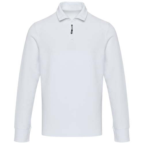 The Zeus unisex long sleeve with half zip is made from 245 g/m² piqué knit in 100% cotton for year-round wear. It features refined pick-stitch detailing, with self-fabric neck tape for added durability and side slits with self-fabric inserts for enhanced mobility. A heat transfer main label ensures label-free comfort. Equipped with AWARE™ traceability technology, this garment includes a digital product passport for verified transparency and sustainability.